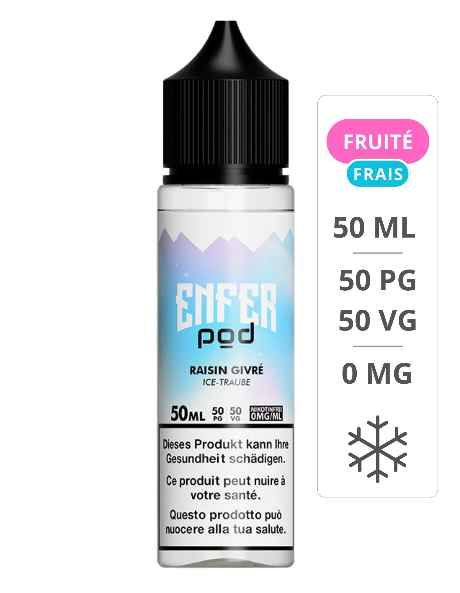 Ajoutez à votre panier le e-liquide Raisin Givré 50 ml – Enfer Pod et profitez d’une vape fruitée, fraîche et intensément aromatique.