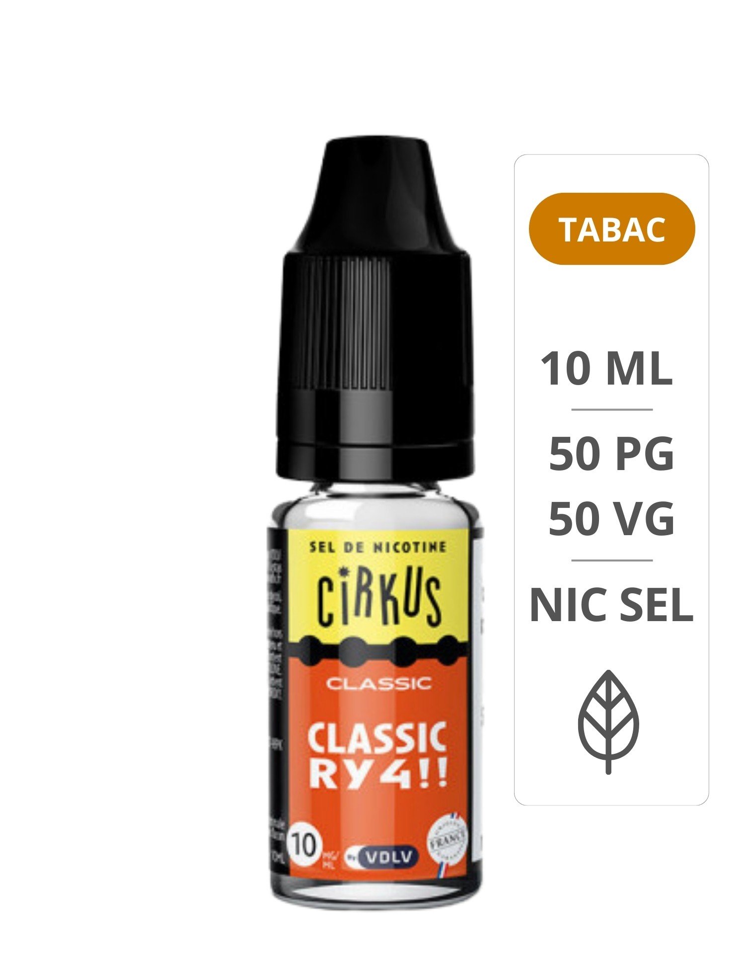 Le RY4 est l'un des premiers profils gourmands de la vape. Né il y a 15 ans, c'est un mélange de tabac blond + caramel + vanille. Un profil qui réconforte. Qui rappelle des souvenirs. Qui met à l'aise. Le Classic RY4 de CirKus respecte cette recette originale avec des arômes naturels français.