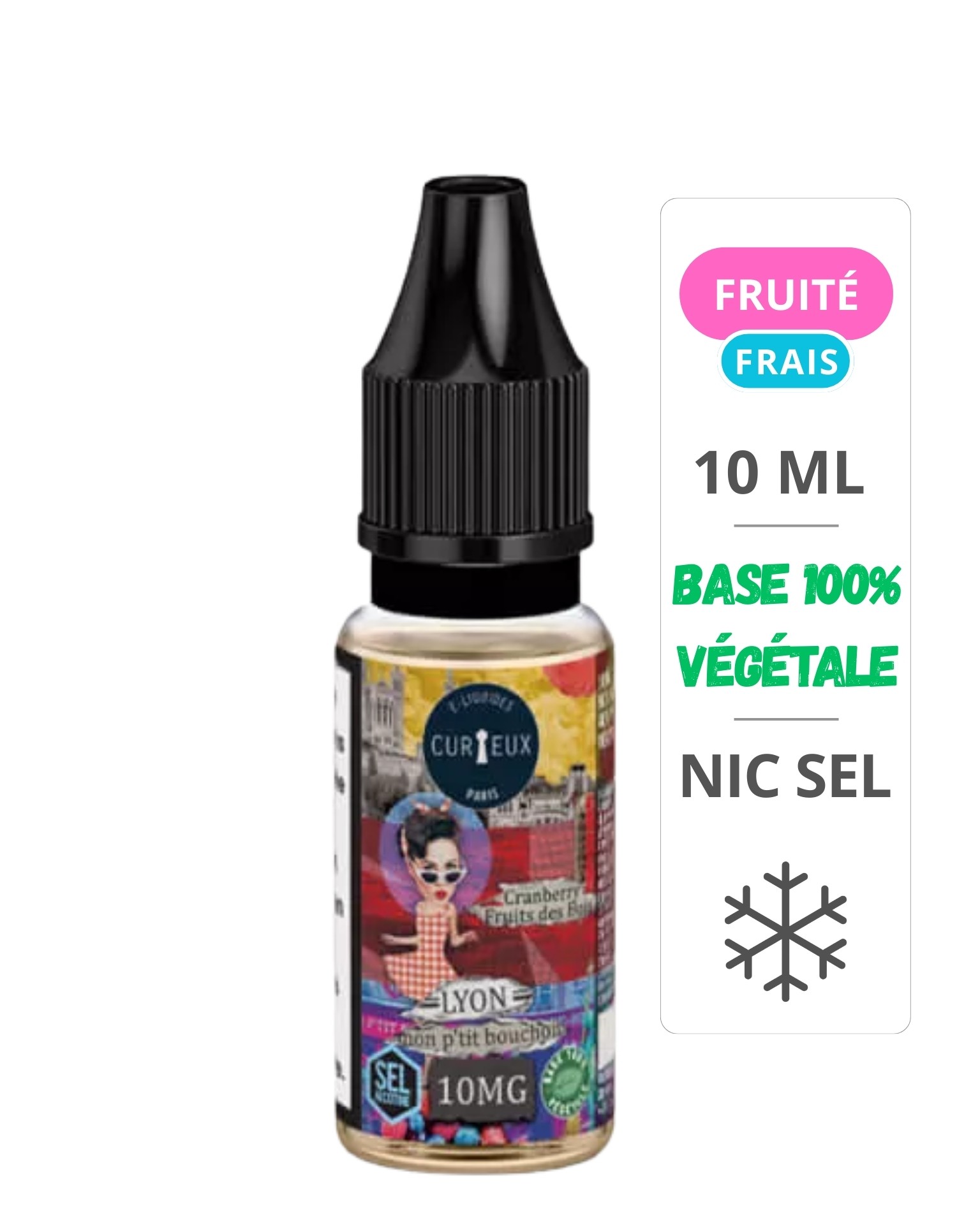 Base 100 % végétale — 40 % PG végétal / 60 % VG. Sels de nicotine 10 mg et 20 mg. Fabriqué en France.