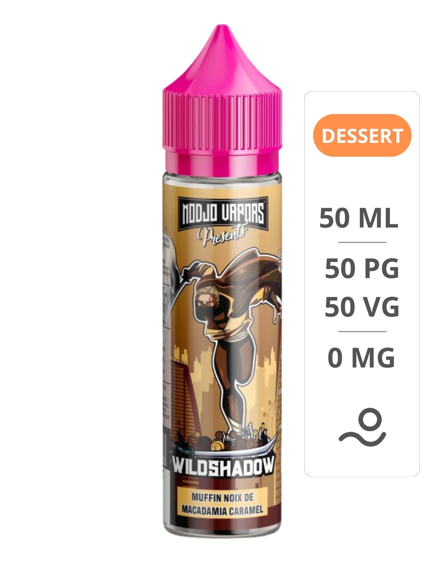 Muffin moelleux, noix de macadamia et caramel — le seul profil pâtissier-gourmand de la gamme Modjo Vapors. Gamme Modjo Vapors, fabriqué à Brignoles dans le Var.
