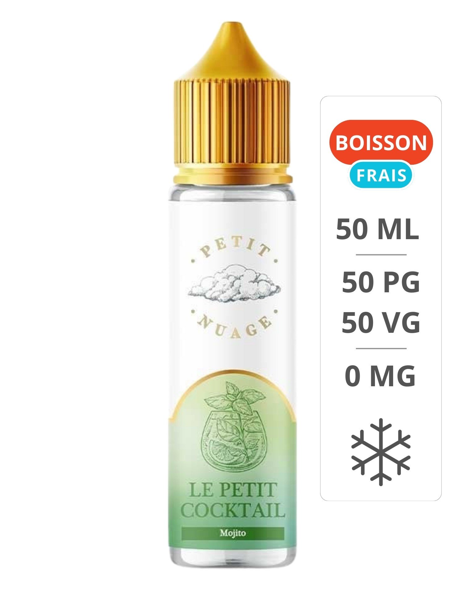 Vendu en flacon de 50 ml, Le petit cocktail Petit nuage est produit dans une base 50/50 PG/VG, il est vendu sans nicotine