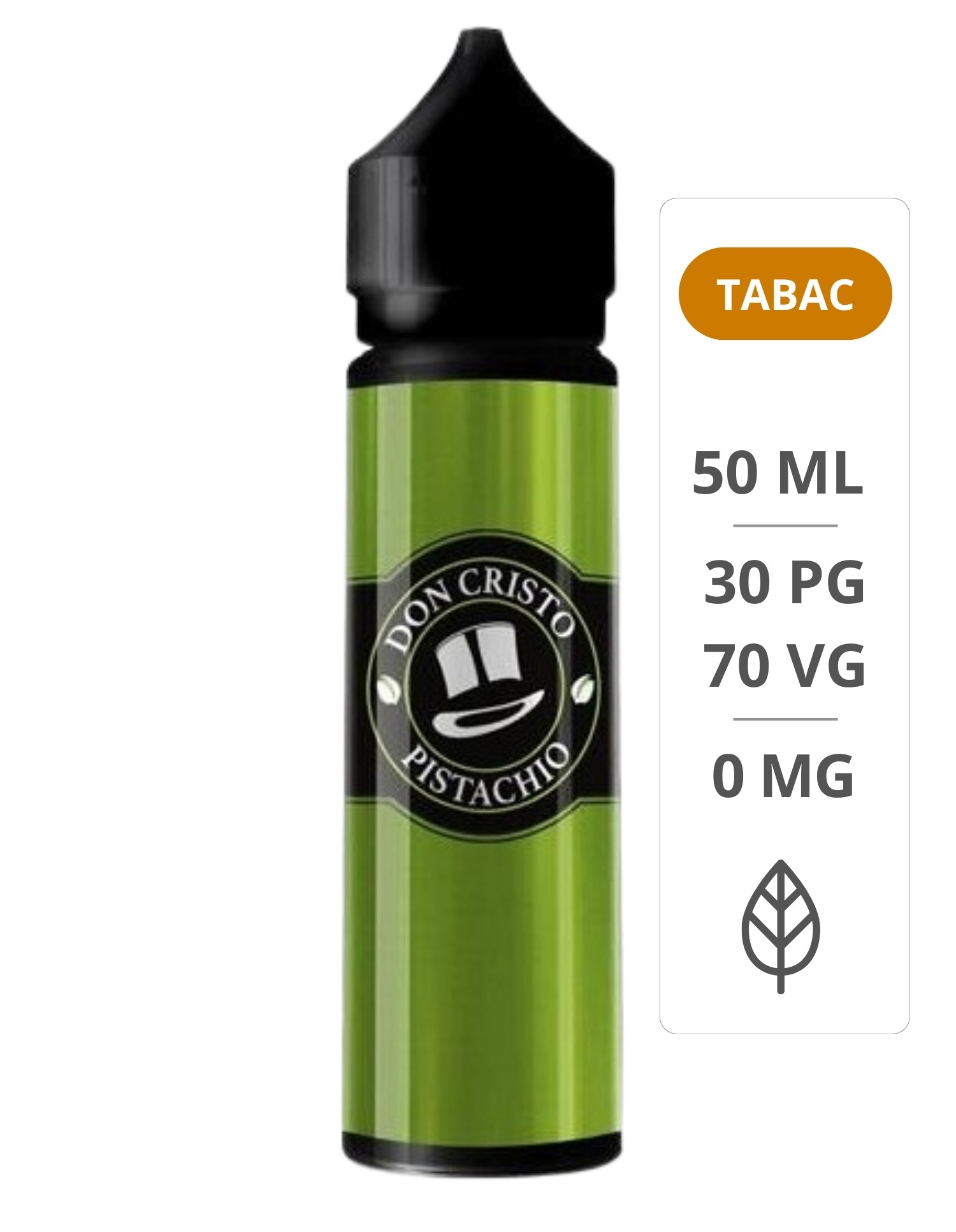 Vendu en flacon de 50 ml, Le Don Cristo Pistachio est fabriqué par PGVG Labs au Canada et produit dans une base 30/70 PG/VG.