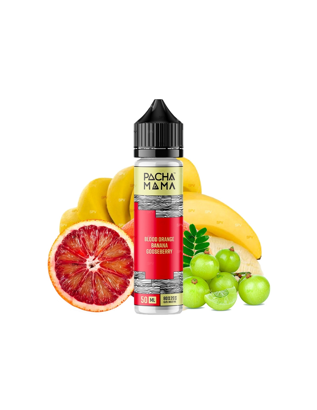 Le Blood Orange Banana Gooseberry 50 ml de la gamme Pachamama réunit trois fruits au caractère bien marqué : l’orange sanguine éclatante, la banane gourmande et la groseille vive et acidulée. Un e-liquide fruité complet, sans effet glacé, destiné aux amateurs de saveurs naturelles et intenses.