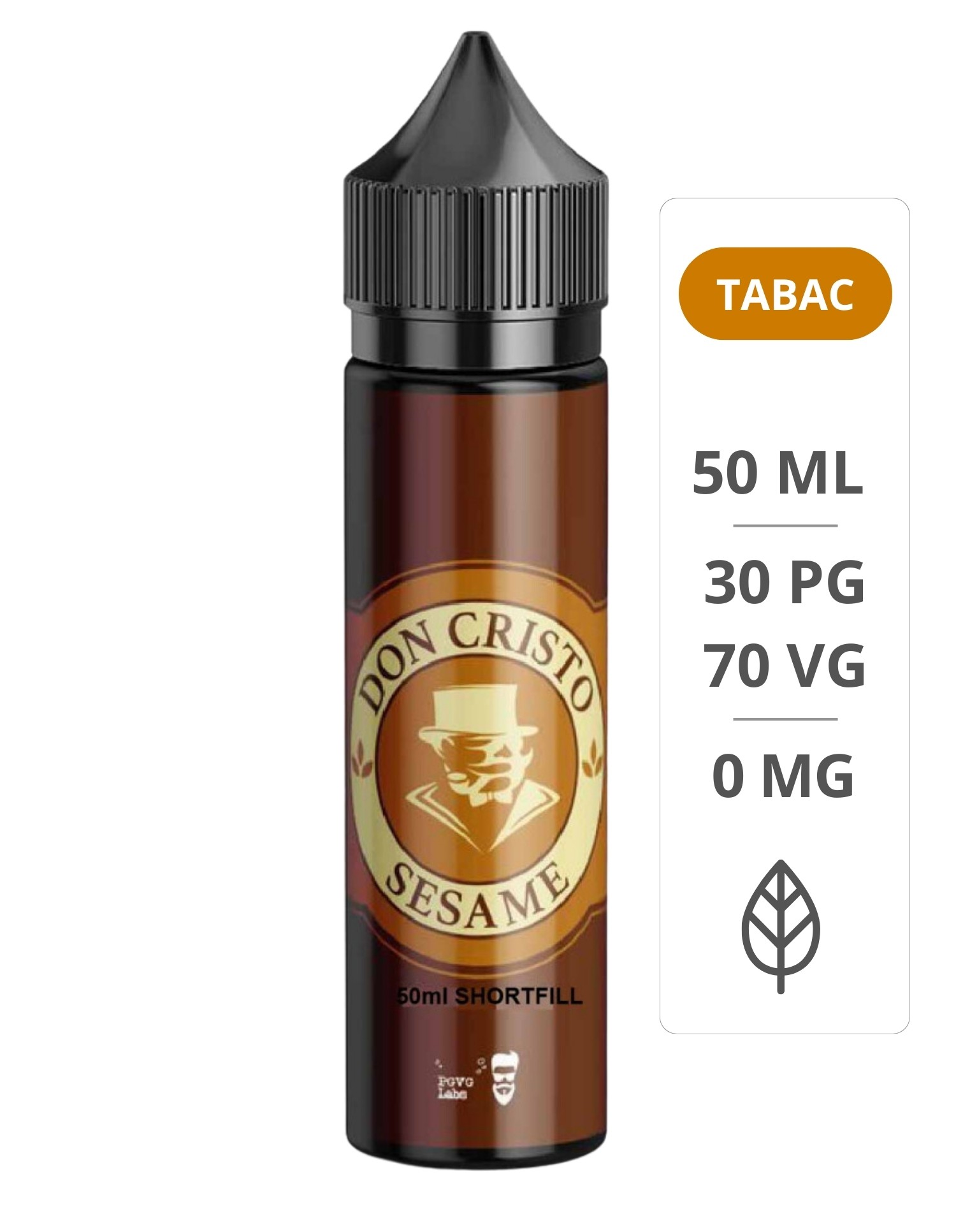 Vendu en flacon de 50 ml, Le Don Cristo Sesame est fabriqué par PGVG Labs au Canada et produit dans une base 30/70 PG/VG.