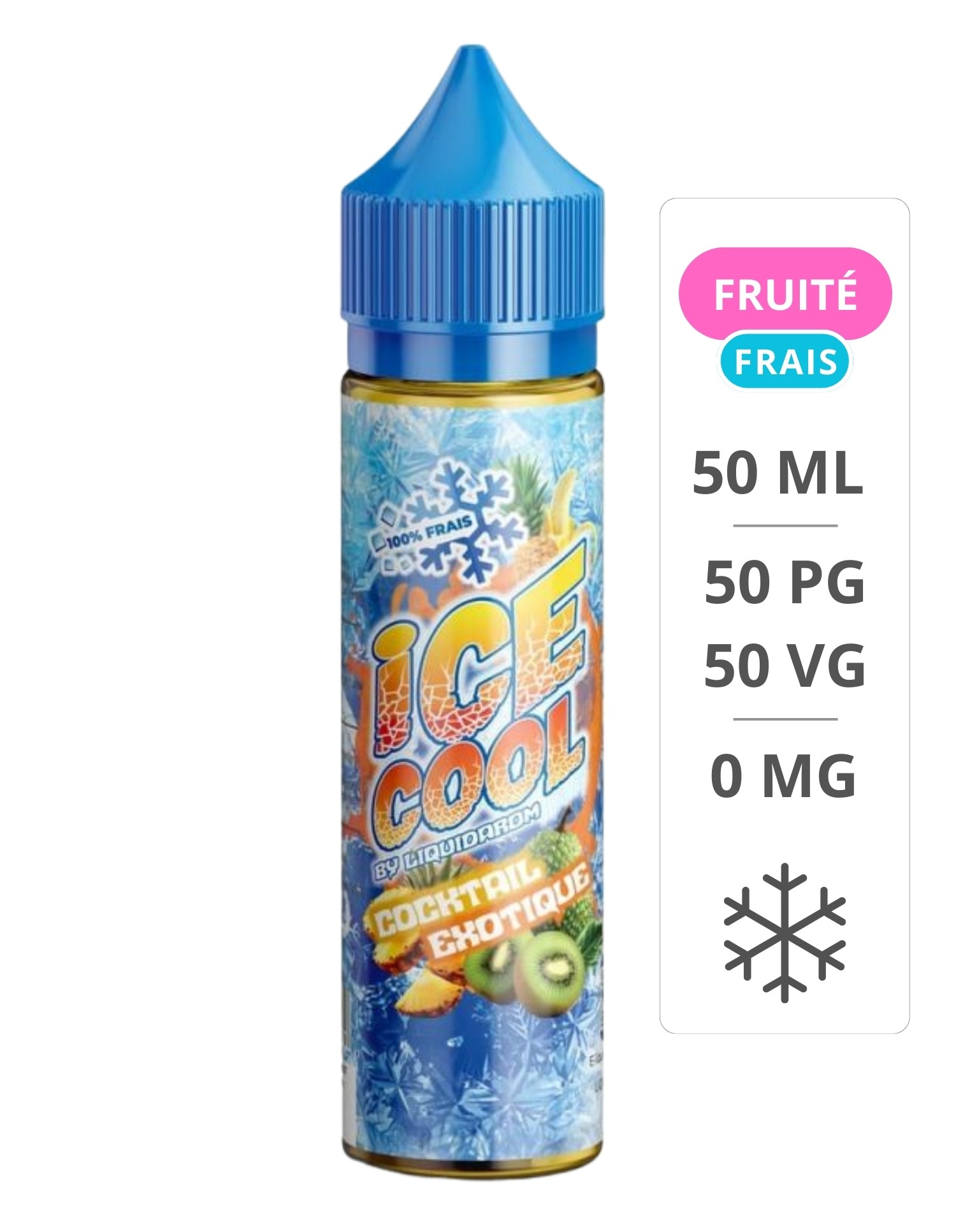 Comme tous les e-liquides Ice Cool, Cocktail Exotique est enrichi d’un effet mentholé puissant et désaltérant. L’idéal pour les vapoteurs en quête de sensations toniques et rafraîchissantes.