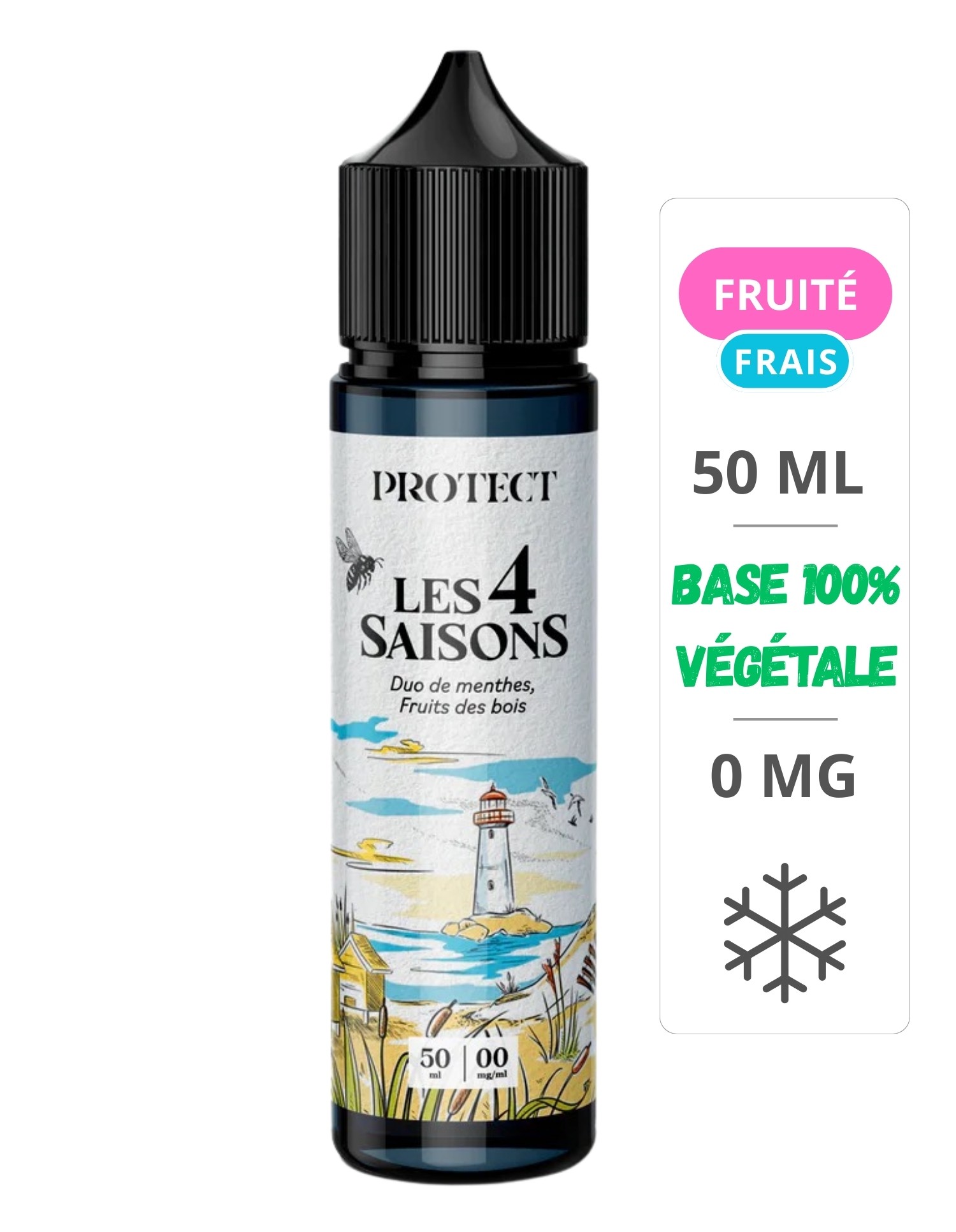 La gamme Les 4 Saisons de Protect vous invite à un voyage gustatif au fil de l’année. Pour l’édition Été, découvrez un mélange rafraîchissant et fruité : l’alliance puissante d’un duo de menthes glaciales et de la gourmandise acidulée des fruits des bois. Un e-liquide parfait pour les amateurs de fraîcheur fruitée en quête d’un all-day désaltérant.